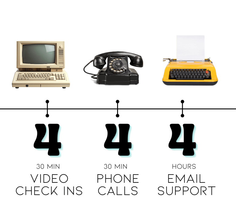 Light, steady support every other week with a mix of check-ins and tracked email time—perfect for staying on track without a packed calendar. Click here to see all that is included in this package.